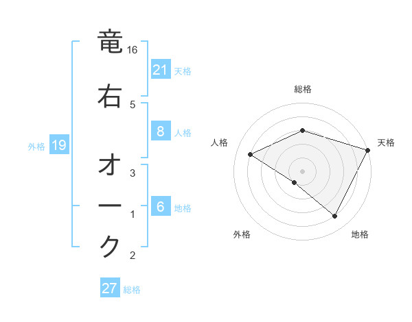 竜右 オークさんの天格は21画の5点!