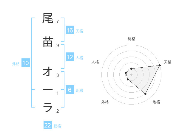 尾苗 オーラさんを姓名の画数から五運を鑑定