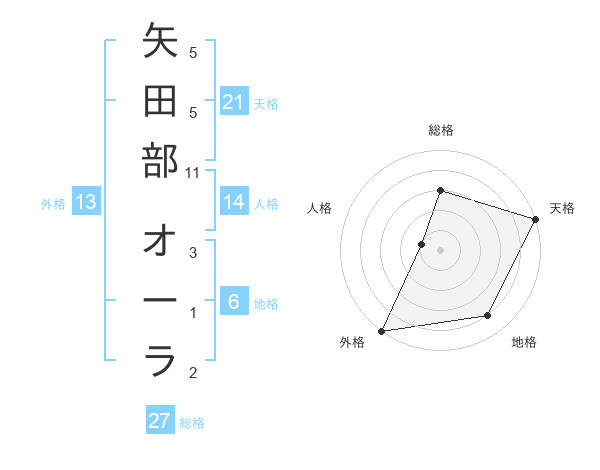 矢田部 オーラさんを姓名の画数から五運を鑑定