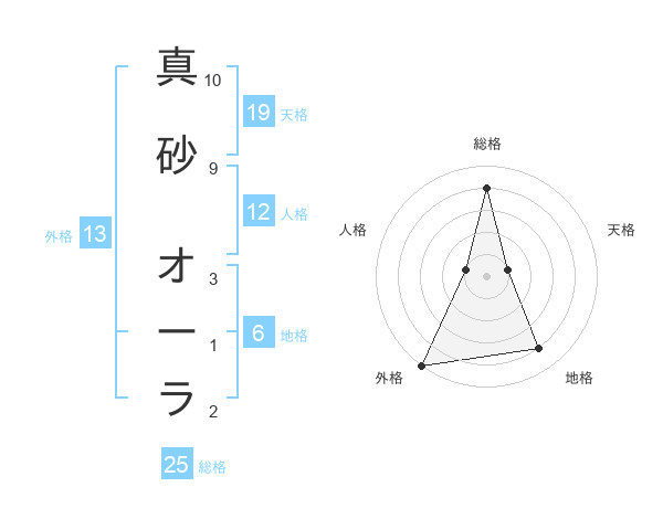 真砂 オーラさんの天格は19画の1点!