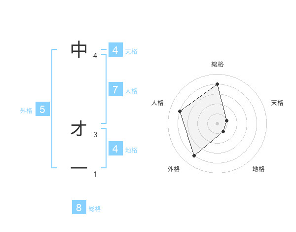 中 オーさんの総格は8画の4点!
