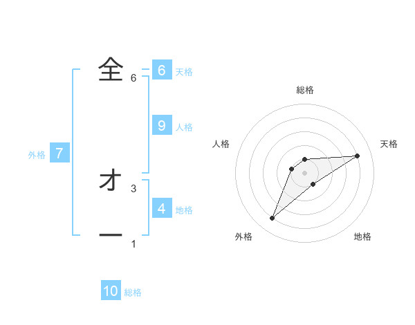 全 オーさんの総格は10画の1点!
