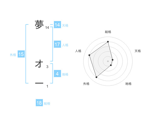 夢 オーさんの総格は18画の4点!