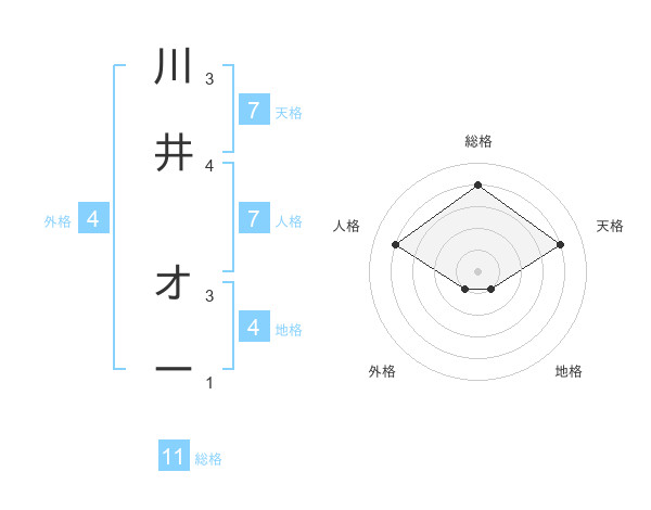 川井 オーさんの総格は11画の4点!