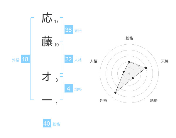 応藤 オーさんの総格は40画の2点!