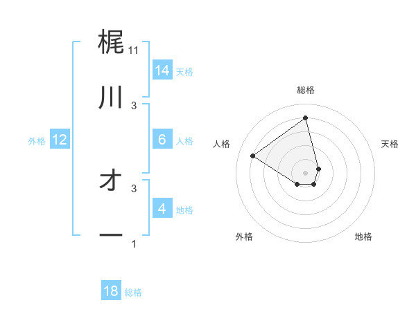 梶川 オーさんの総格は18画の4点!