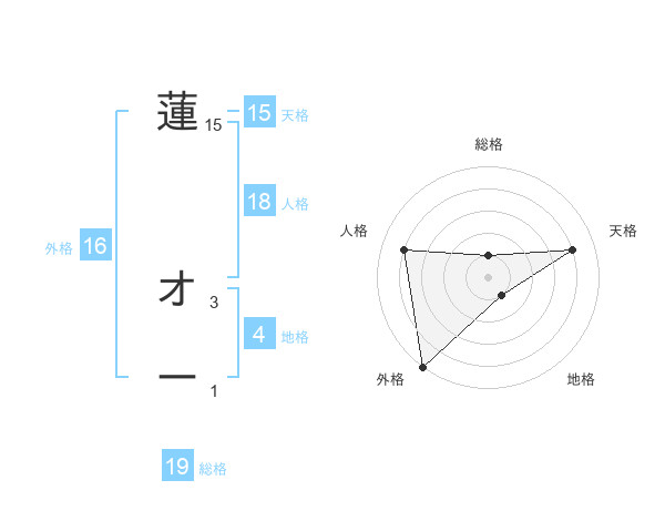 蓮 オーさんの天格は15画の4点!
