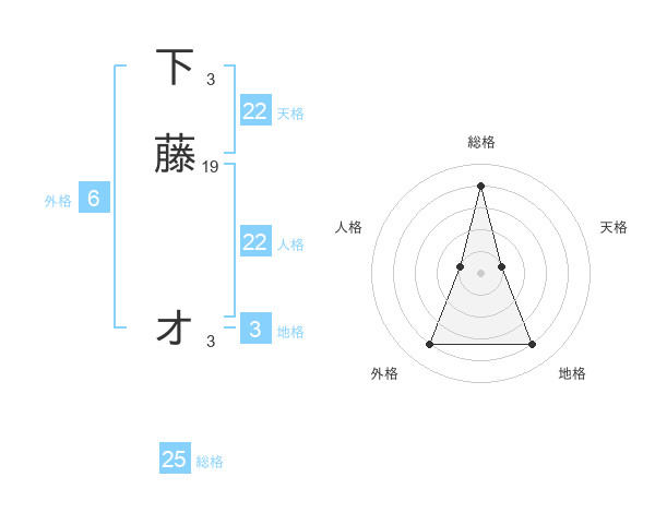 下藤 オさんの人格は22画の1点!
