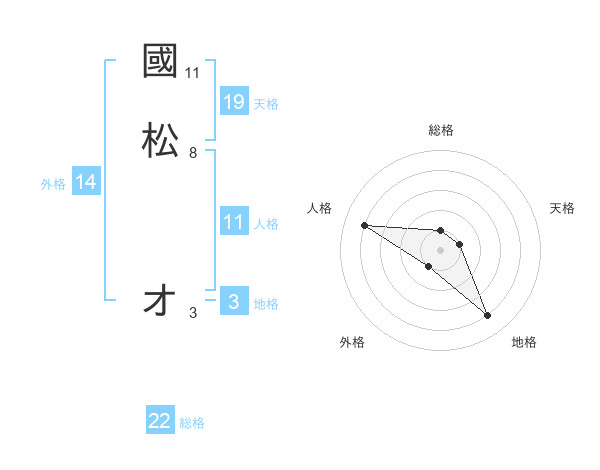 國松 オさんの総格は22画の1点
