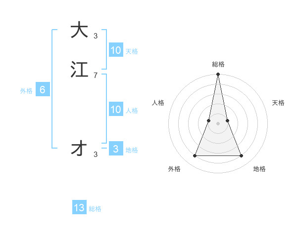 大江 オさんの総格は13画の5点!