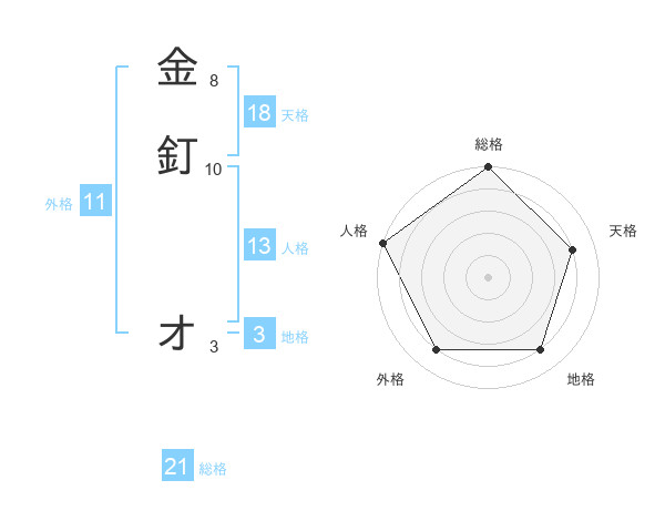 金釘 オさんの人格は13画の5点!