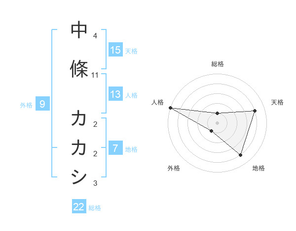 中條 カカシさんの総格は22画の1点!