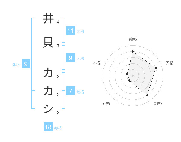 井貝 カカシさんの総格は18画の4点!