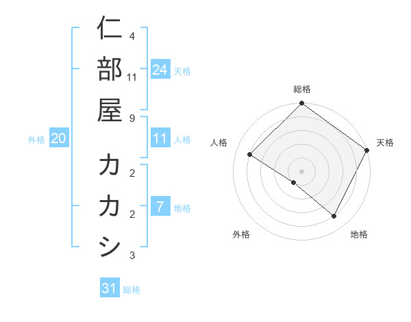仁部屋 カカシさんを姓名の画数から五運を鑑定