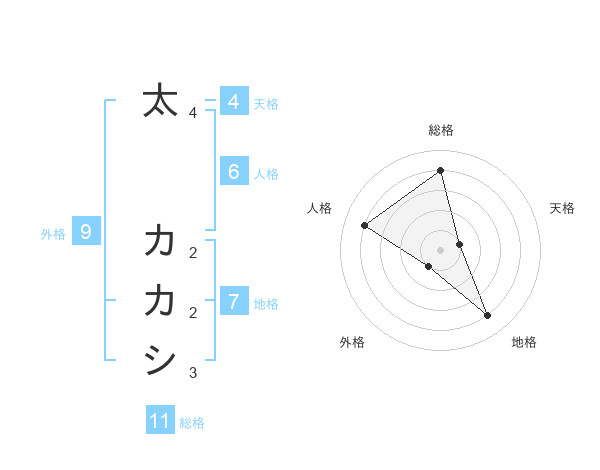 太 カカシさんの総格は11画の4点!
