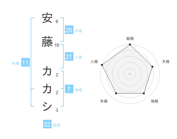 安藤 カカシさんを姓名の画数から五運を鑑定