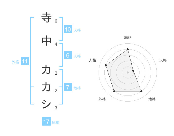寺中 カカシさんの総格は17画の4点!