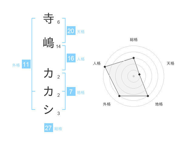 寺嶋 カカシさんを姓名の画数から五運を鑑定
