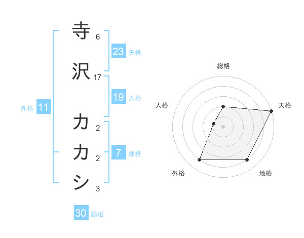 寺沢 カカシさんの天格は23画の5点!