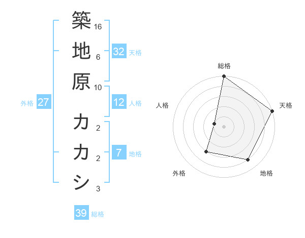 築地原 カカシさんの総格は39画の5点!