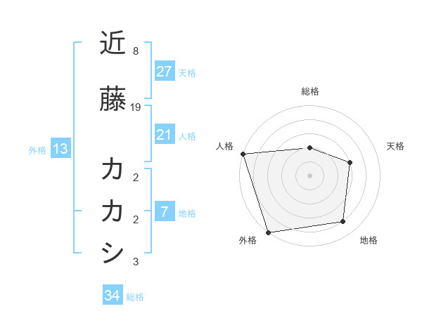 近藤 カカシさんを姓名の画数から五運を鑑定