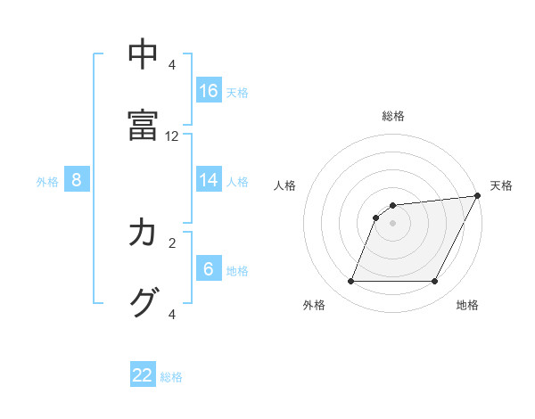 中富 カグさんの天格は16画の5点!