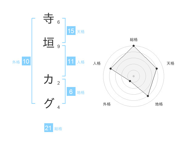 寺垣 カグさんの総格は21画の5点!