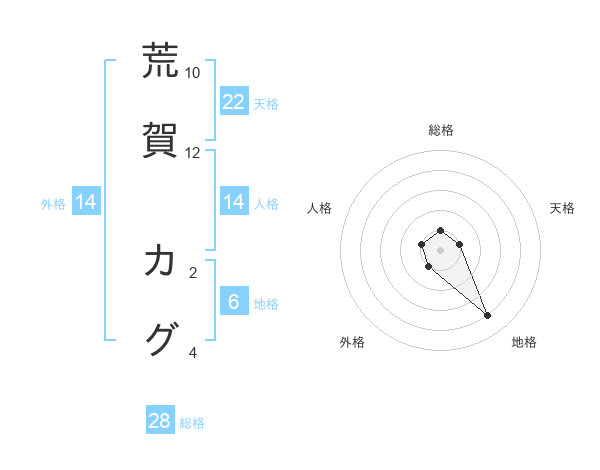 荒賀 カグさんを姓名の画数から五運を鑑定