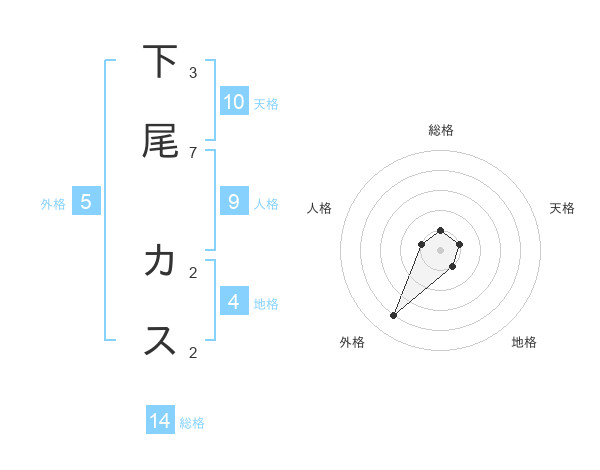 下尾 カスさんの総格は14画の1点!