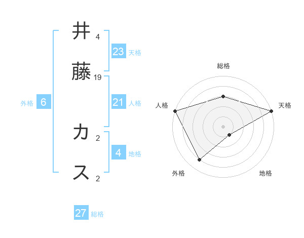 井藤 カスさんの総格は27画の3点!