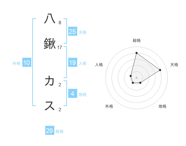 八鍬 カスさんの総格は29画の4点!