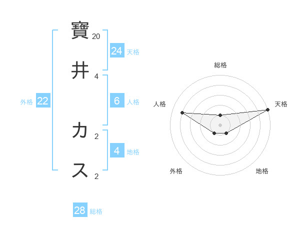 寶井 カスさんの天格は24画の5点!