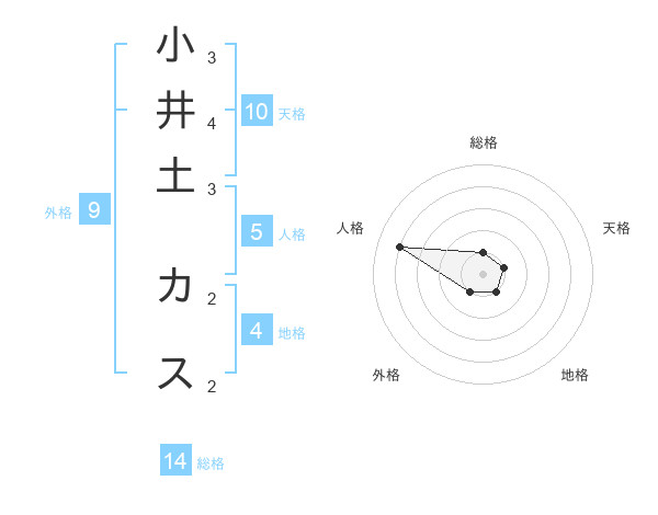 小井土 カスさんの総格は14画の1点!
