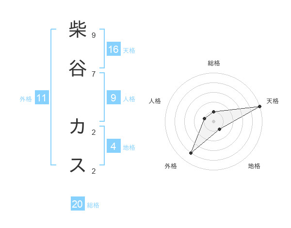 柴谷 カスさんの総格は20画の1点!