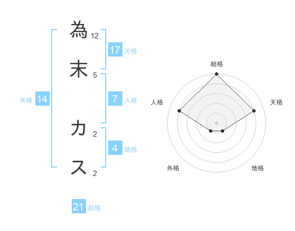 家系が持つ宿命的な運勢を表します。祖先から受け継いだ苗字ですので自分の力が及びません。家柄を象徴します。