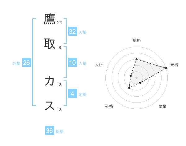 鷹取 カスさんの天格は32画の5点!