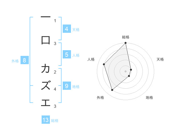 一口 カズエさんの総格は13画の5点!