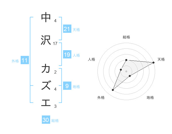 中沢 カズエさんの天格は21画の5点!