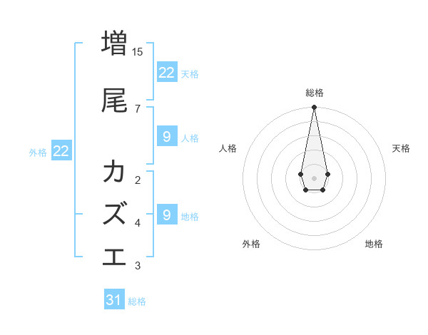 増尾 カズエさんを姓名の画数から五運を鑑定