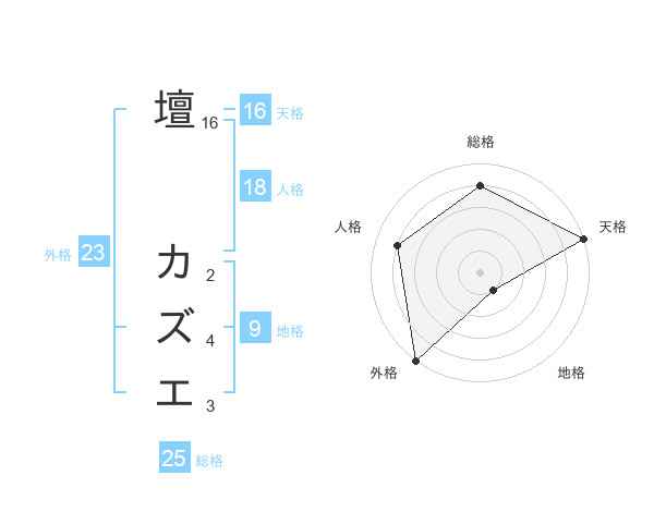 壇 カズエさんの外格は23画の5点!