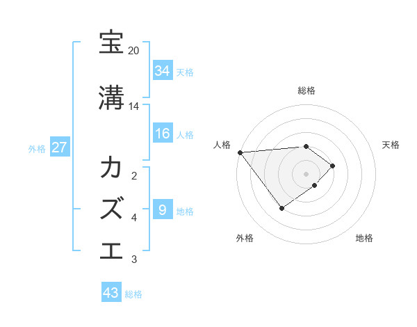 宝溝 カズエさんの総格は43画の2点!