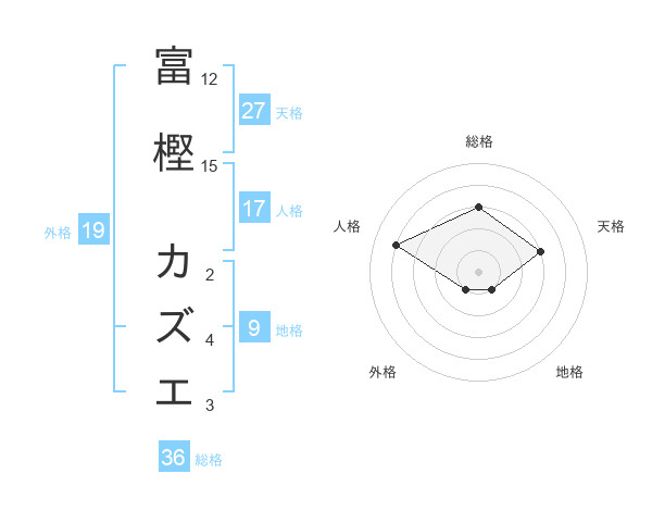 富樫 カズエさんを姓名の画数から五運を鑑定