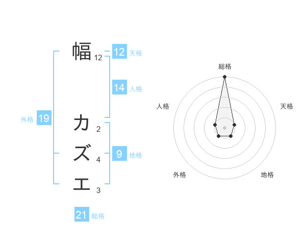 幅 カズエさんの総格は21画の5点!