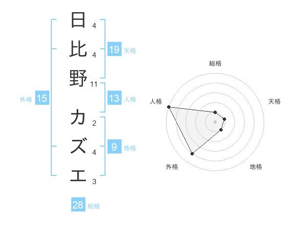 日比野 カズエさんを姓名の画数から五運を鑑定