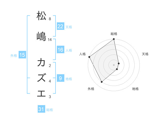 松嶋 カズエさんを姓名の画数から五運を鑑定