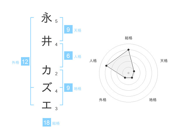 永井 カズエさんの総格は18画の4点!