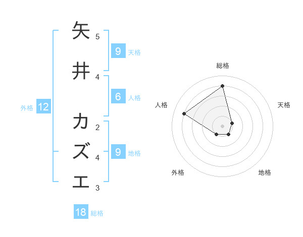 矢井 カズエさんを姓名の画数から五運を鑑定