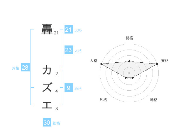 轟 カズエさんの天格は21画の5点!