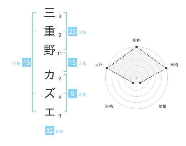 三重野 カズエさんを姓名の画数から五運を鑑定