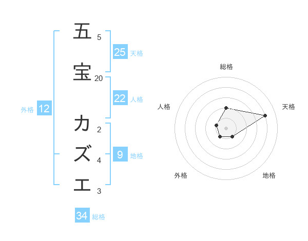 五宝 カズエさんを姓名の画数から五運を鑑定